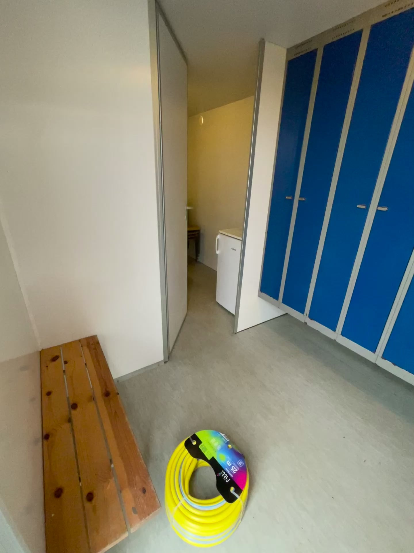 Denne mandskabsvogn er en funktionel og fleksibel løsning til midlertidige arbejdsområder og byggepladser. Vognen er indrettet med et rummeligt spiseområde, omklædning, brusebad samt toilet med Ø110 kloaktilslutning, hvilket giver en komfortabel og effektiv base for dagligt arbejde.